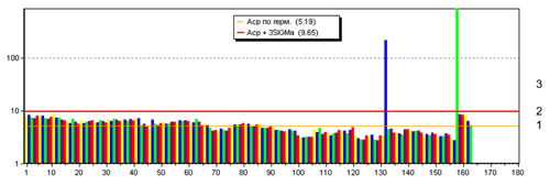 The following chart illustrates the beta-activity from a recent fuel assembly inspection using Kinegge’s IMSS. Fuel assemblies 132 and 158 demonstrated beta-activity beyond the operational threshold and were removed.