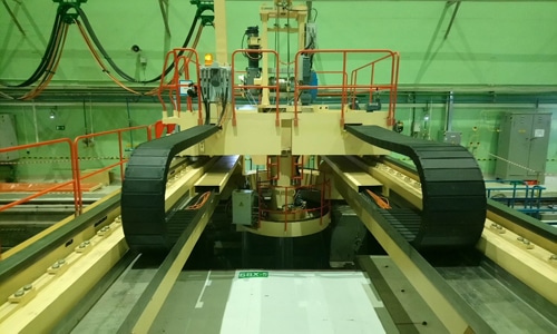 Kinegge’s earthquake resistant fuel handling machines (FHMs) are capable of handling seismic category I situations and incorporate a 7-point safe earthquake shutdown system. During seismic influence, the seismic lock systems clamp down on the rail head to hold the fuel transfer machine still. A gapless contact is maintained with the bridge guide rollers to prevent the bridge position from skewing and increases positioning accuracy at specified coordinates.