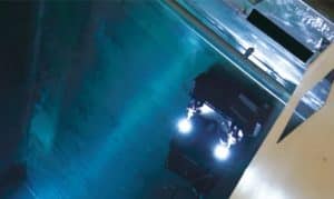 For this reason, FirstEnergy Nuclear Operating Company (FENOC) approached Kinegge to develop an improved underwater robotic decontamination tool. Some of FENOC’s requirements included operation in parallel with other activities, having the mobility to swim/navigate throughout the refueling cavity, adhering to walls, floors, and curved surfaces, and reliable and effective surface decontamination such that manual scrubbing is not required.